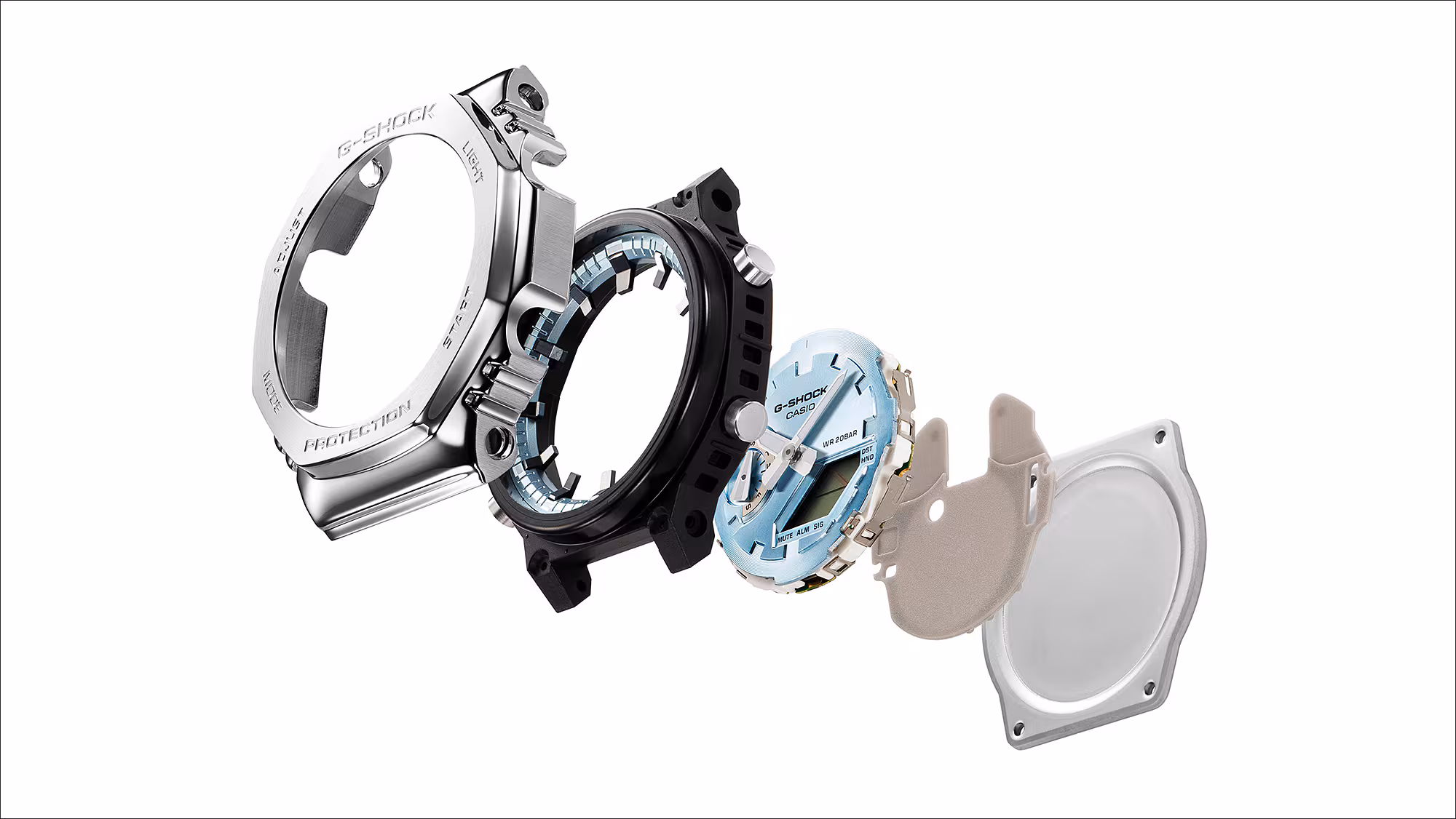 Shock resistance is the cornerstone of G-SHOCK’s hard-earned reputation. The glass-fiber resin case is part of the shock-resistant structure at the heart of G-SHOCK’s innovative design. Men’s blue-dial watches need to be built to withstand the rigors of home, casual, and business use, and the engineers of G-STEEL watches have crafted this metal G-SHOCK with these uses in mind. 200-meter water resistance (wr 20 bar) rounds out the protection, ensuring your blue-dial watch is tough and reliable, while the double Super Illuminator LED illuminates the metal dial and digital display for an easy read.