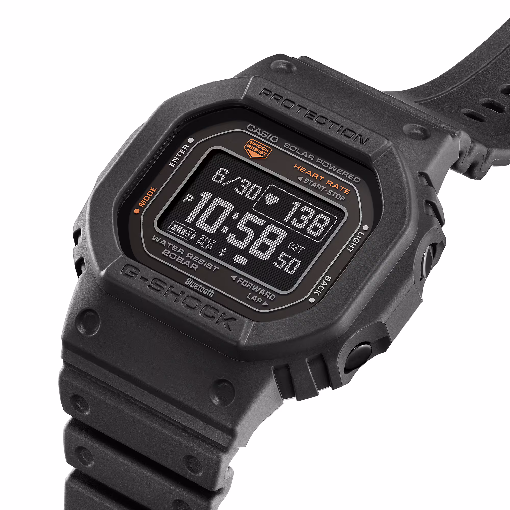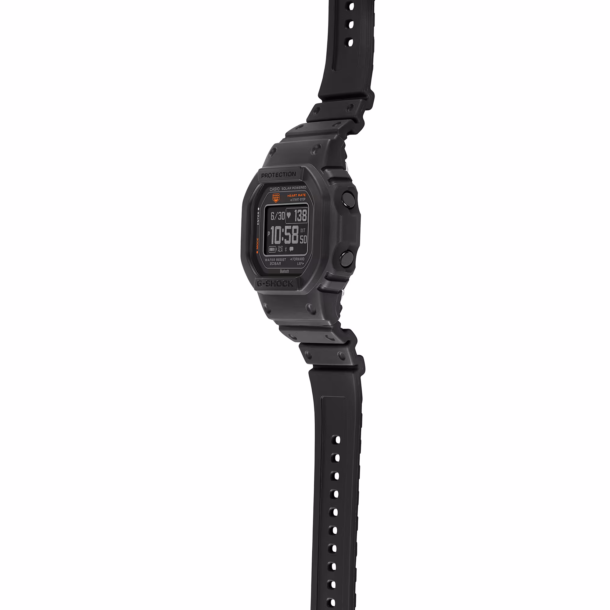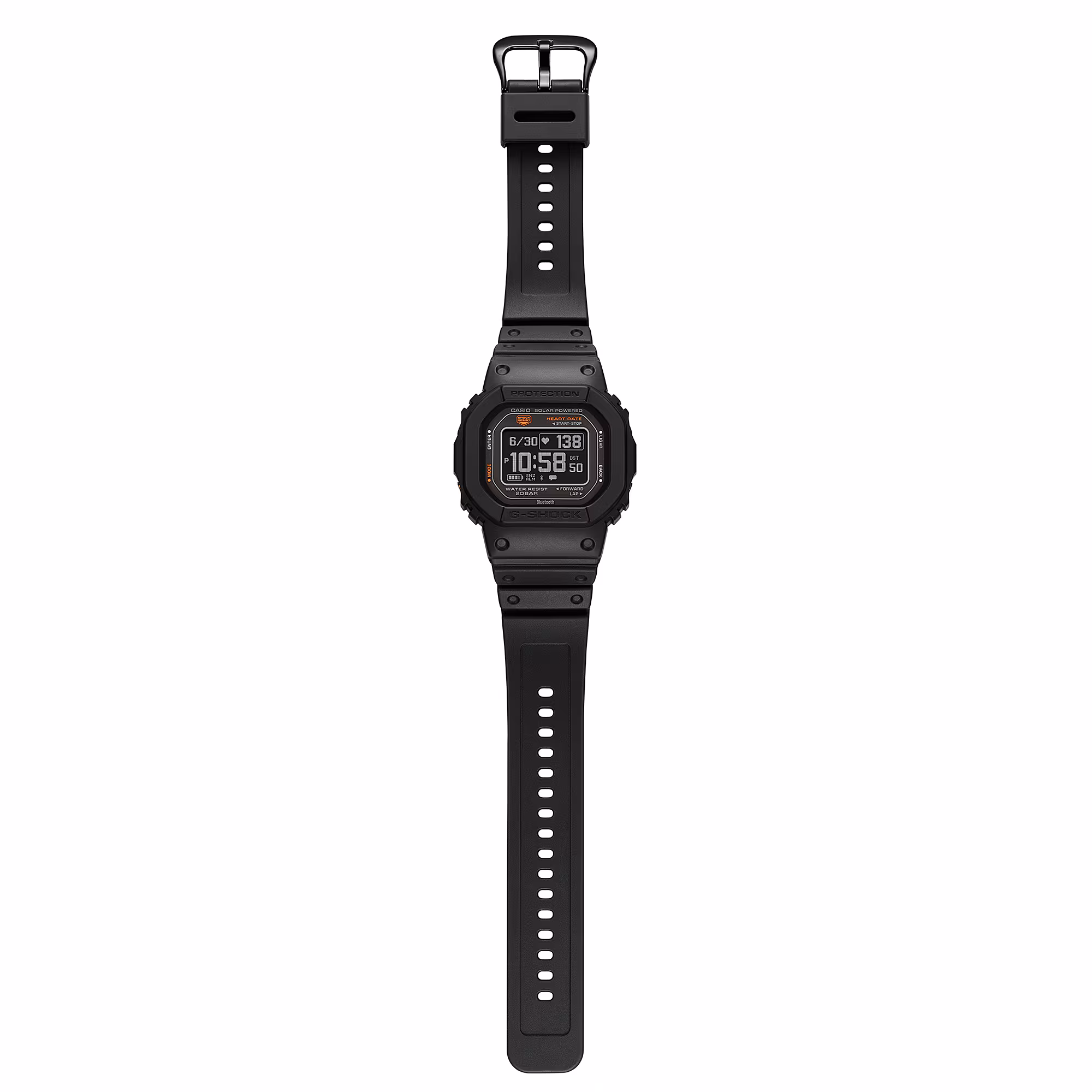 The luxury fitness watch’s rugged construction, including shock resistance and 200-meter water resistance, ensures durability even in the most demanding environments. The mineral glass protects the MIP LCD, which provides clear and crisp visibility. With dimensions of 51.1 x 44.5 x 17.4mm and a weight of 59g, the DW-H5600 strikes the perfect balance between robustness and wearability.