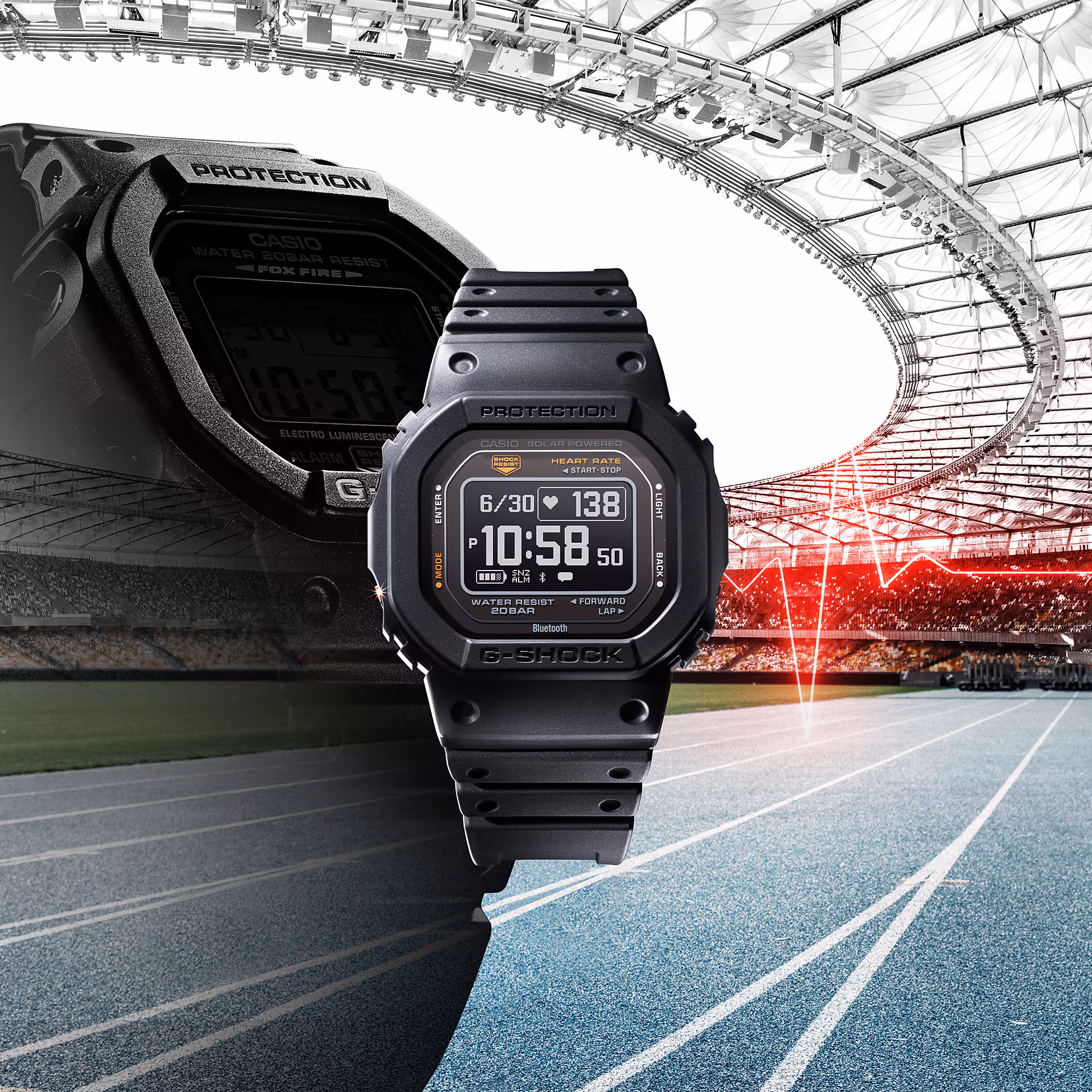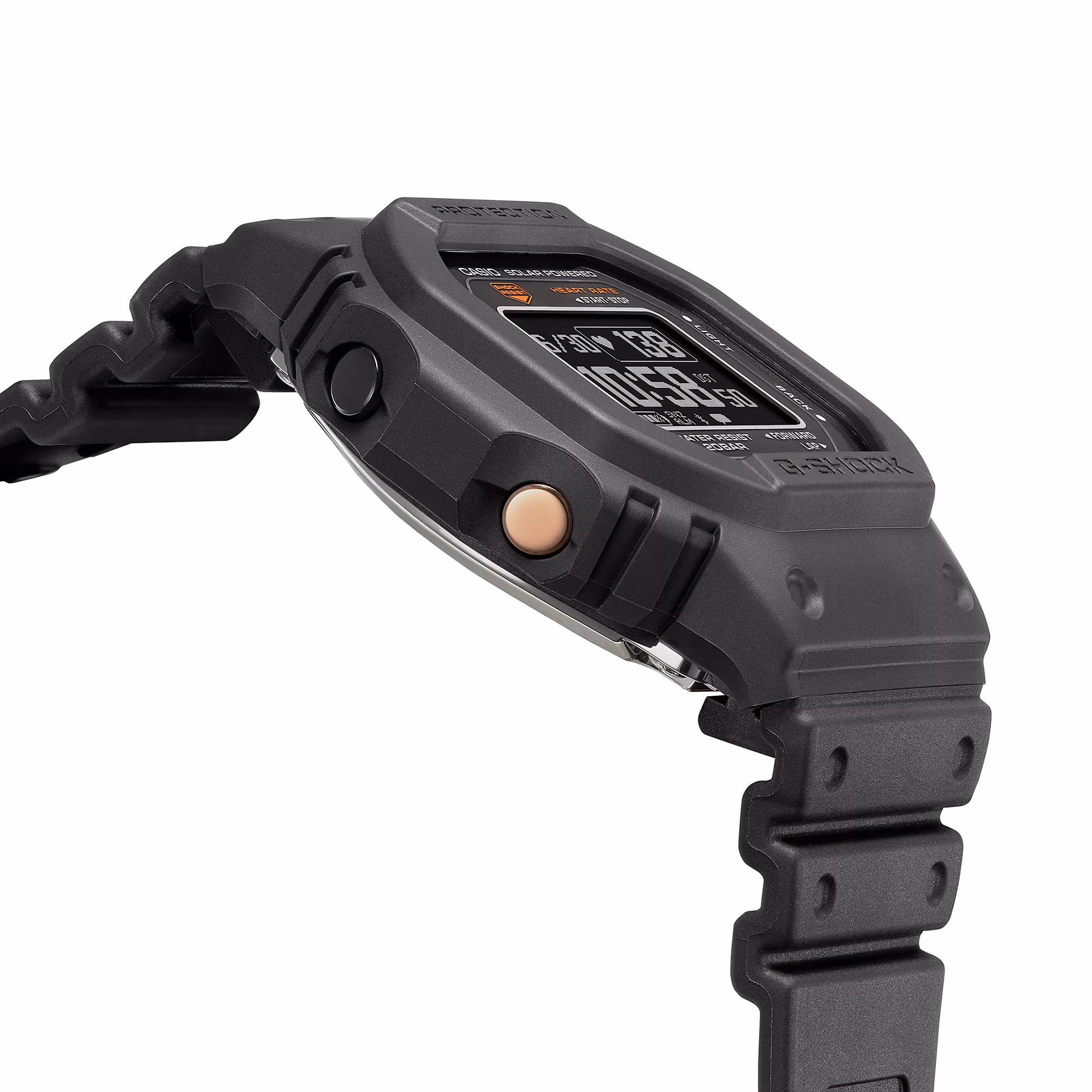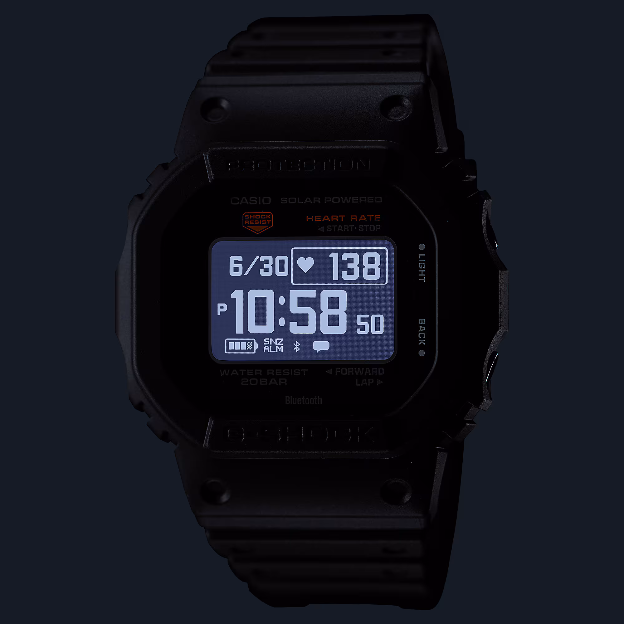The luxury fitness watch’s rugged construction, including shock resistance and 200-meter water resistance, ensures durability even in the most demanding environments. The mineral glass protects the MIP LCD, which provides clear and crisp visibility. With dimensions of 51.1 x 44.5 x 17.4mm and a weight of 59g, the DW-H5600 strikes the perfect balance between robustness and wearability.