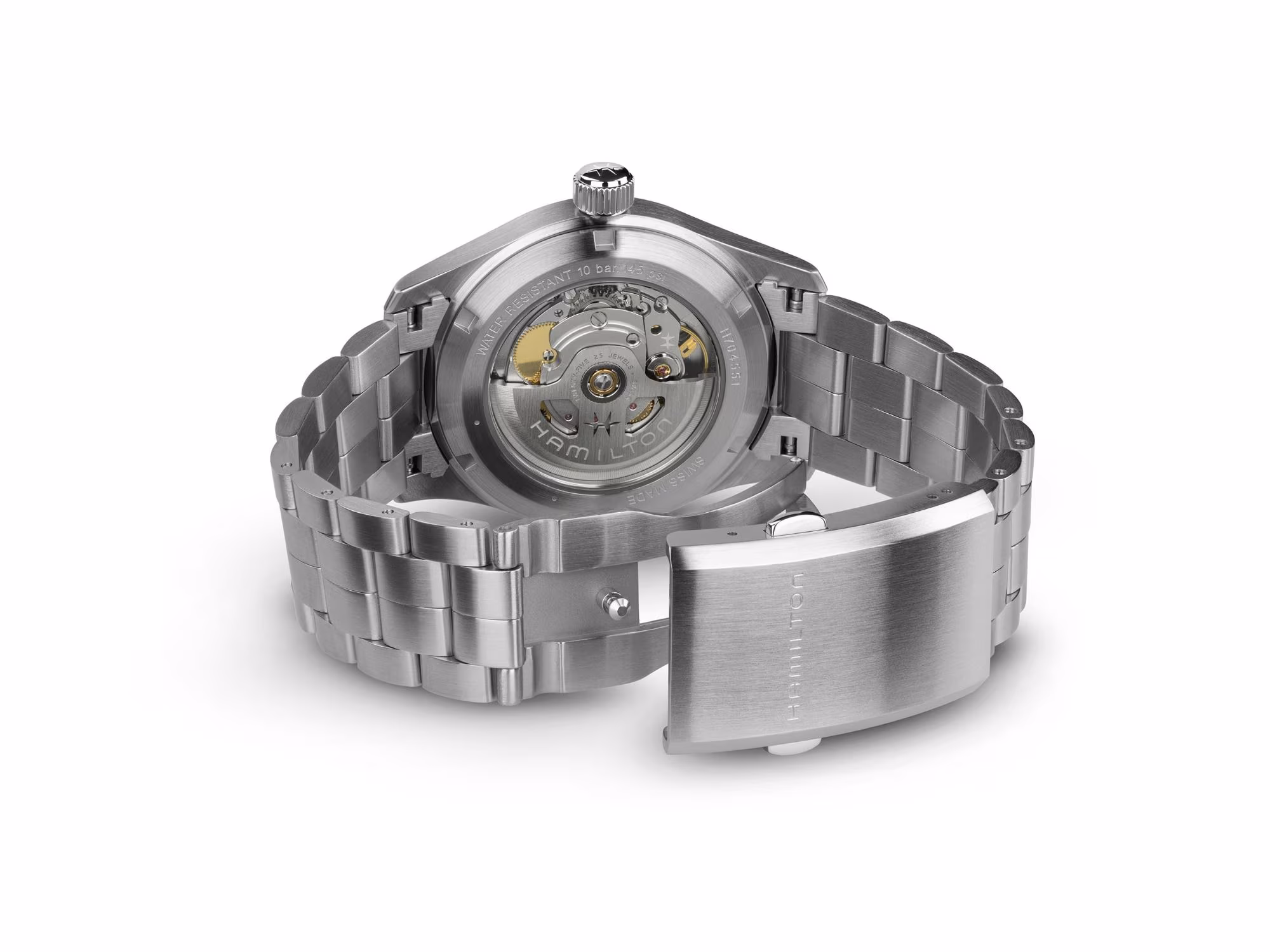 A three-hand movement with or without a date function and boasting a superior power reserve of 80 hours, the H-10 appears with intricate contrasting snail and pearled patterns for the American Classic models it drives and streamlined surfaces for the pilots’ watches.
