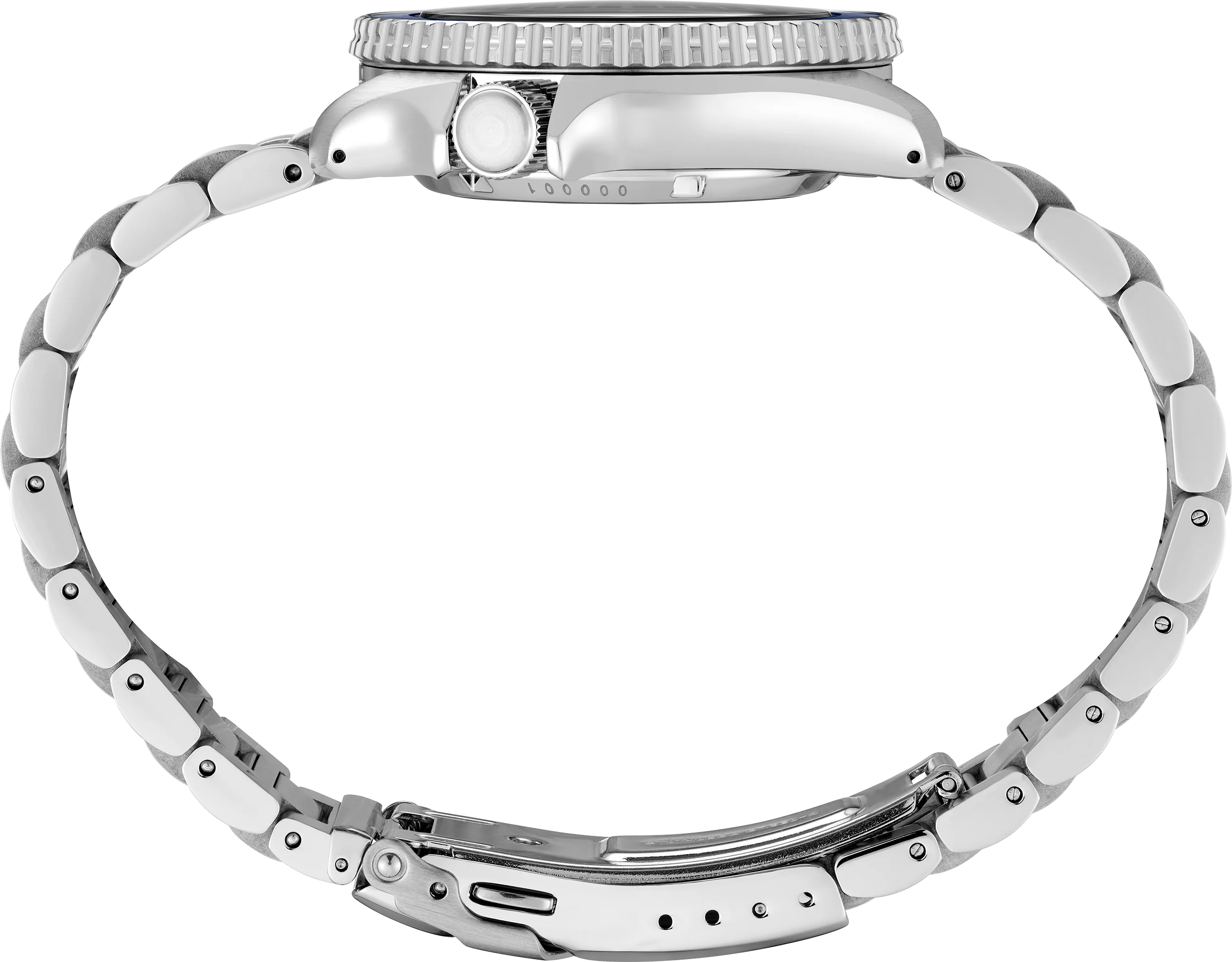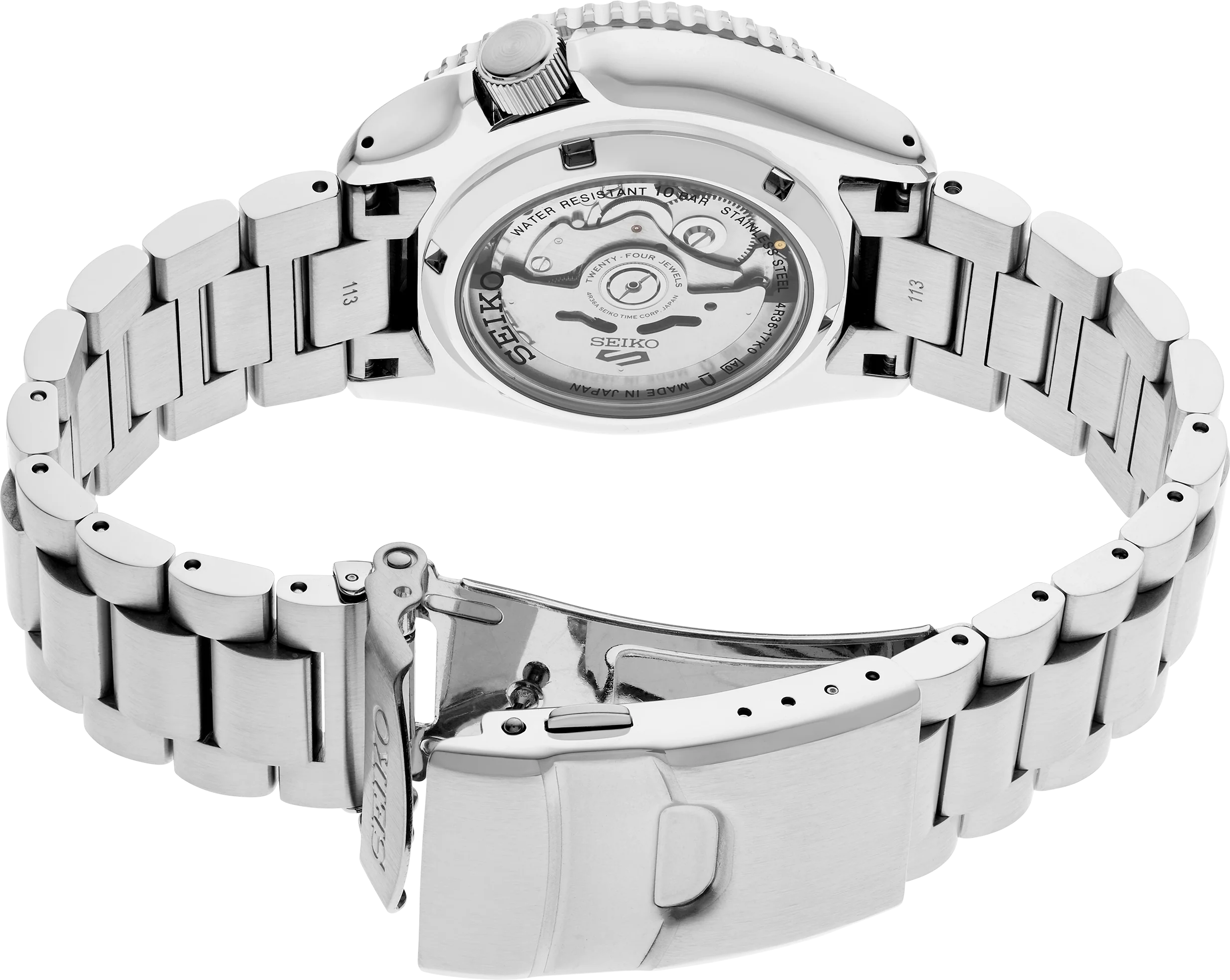 Show your style. Make your move. Since the 1960s, Seiko 5 Sports has delivered consistently high levels of reliability, durability, and performance. Paying homage to Seiko’s iconic SKX models of the past, this creation inherits the layout of the original, featuring indexes with a rich texture and hands with a distinct, yet refined design. For dependable timekeeping in your everyday life, this exceptional watch is powered by an automatic movement with a power reserve of approximately 41 hours and is equipped with a day/date calendar, LumiBrite hands and markers, and a see-through caseback. Crafted of stainless steel, this versatile timepiece displays a deep blue dial framed by a coordinating rotating bezel with a glossy Hardlex insert for a sophisticated feel. Water resistant to 100 meters, the Seiko 5 Sports collection is perfect for your style no matter what your day has in store.