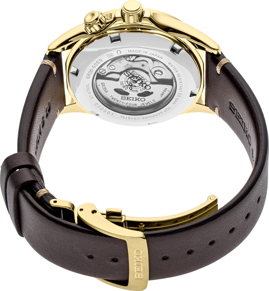 Designed for those who treat life as the ultimate adventure, the Seiko Prospex line meets every challenge with technological excellence and style. Part of a rich legacy of innovation in high-intensity timekeeping, Prospex continues to celebrate a long history of sports watch excellence with re-creations and re-interpretations of landmark achievements. A modern reimagining of Seiko’s first sport watch, introduced in 1959, this distinctive timepiece joins a highly successful line launched in 2019. Styled to fit contemporary tastes while evoking a vintage feel, this versatile watch features a rotating inner compass bezel framing a gradated green dial with magnified date calendar and LumiBrite hands and markers, as well as an anti-reflective sapphire crystal. The 24-jewel automatic movement beats at a frequency of 21,600 vibrations per hour, with a power reserve of approximately 70 hours, and can be wound manually or automatically. Crafted of stainless steel, with gold finish, screwdown crown, see-through caseback, brown leather strap and tri-fold push button release clasp. 20 bar, 200M Water Resistant