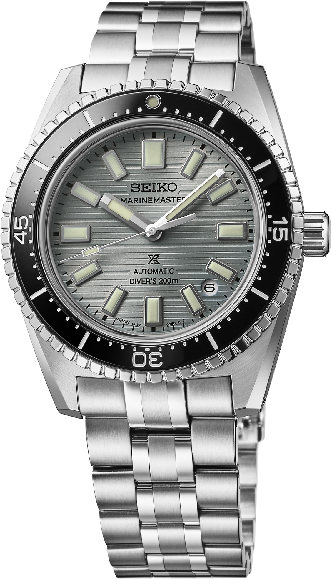 Distinguished by its blend of functionality and aesthetics, this extraordinary timepiece, part of the first globally launched watch series to bear the “Marinemaster” name, features the first see-through screwdown caseback on a Seiko diver’s watch, as well as an elegantly chamfered case and bezel and a flexible double-curved bracelet for a comfortable fit. Based on Seiko’s and Japan’s first diver’s watch from 1965, this exceptional timepiece extends the Prospex tradition of celebrating its rich legacy of innovation in high-intensity timekeeping by re-creating and re-interpreting signature achievements with today’s finest technology and materials. Visible beneath the caseback, the thin, but exceptionally accurate, 26-jewel 6L37 movement beats at a frequency of 28,800 vibrations per hour and provides a power reserve of approximately 45 hours and manual winding capability. Framed by a uni-directional rotating elapsed timing bezel, the distinctively patterned grayish- green dial offers LumiBrite hands and markers. As rugged as it is stylish, this premium diver’s watch, following ISO standards for scuba diving, is crafted of stainless steel with a durable super-hard coating and features a box-shaped sapphire crystal with anti-reflective coating on the inner surface, screwdown crown, and a tri-fold push button release clasp with secure lock and extender. Packaged in a special collectors’ box. 200m Water Resistant