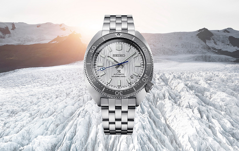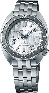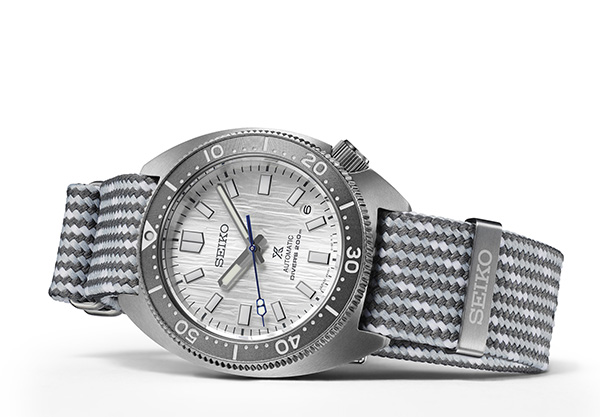 Prospex Seiko Watchmaking 110th Anniversary Limited Edition. To mark 110 years of watchmaking excellence, Seiko is highlighting its continuous dedication to evolving technology, as well as diversity, equality and the sustainable manufacturing necessary to meet environmental challenges. Based on an iconic design, this landmark automatic diver’s watch, available only in a controlled-production run of 5,000, with the serial number engraved on each caseback, also extends the Prospex tradition of celebrating its rich legacy of innovation in high-intensity timekeeping by re-creating and re-interpreting signature achievements. Expressing the power of nature, the three-dimensional pressed pattern silver dial suggests the majesty of Ice Age glaciers transformed through millions of years of cooling. Framed by a gray uni-directional rotating elapsed timing bezel, the dial also features LumiBrite hands and markers, as well as a date calendar. Following ISO standards for scuba diving to depths of up to 200 meters, this exceptional timepiece includes a 24-jewel automatic movement with a frequency of 21,600 vibrations per hour, a power reserve of approximately 70 hours, and manual winding capability. Crafted of stainless steel with durable super-hard coating, screwdown crown and caseback, curved sapphire crystal, and tri-fold push-button release clasp with a new compact buckle, secure lock and extender, this environmentally conscious design emphasizes Seiko’s commitment to conservation by offering an additional fabric strap made of 100% recycled plastic bottles. As part of Seiko’s “Save the Ocean” campaign, a portion of the proceeds from sales of this extraordinary Limited Edition will be contributed to marine conservation. Packaged in a Limited Edition collector’s box. 200m Water Resistant.